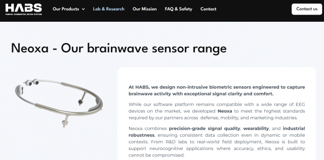 Le salon Vivatech regroupe un grand nombre d’exposants autour de la "Tech", startup, industriels, universités. Parmi eux la société HABS présente un serre tête "Neoxa" qui détecte les ondes cérébrales et peut aider à l’analyse, faisant une forme d’EEG en continu. Le coeur de la technologie d’HABS est dans les logiciels d’analyse des ondes fournis par des détecteurs du marché ou, plus récemment, leur détecteur Neoxa.